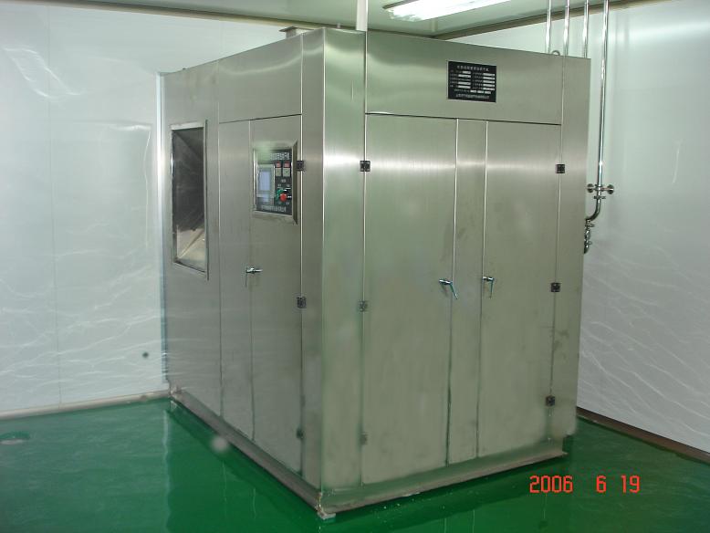 5、上部裝有新風、環(huán)風、排風風閥??筛鶕?jù)需要控制風量,中部裝有風機、電加熱器,形成整個熱風循環(huán)進行烘干滅菌,升溫降溫系統(tǒng)。整個程序按進料——進水——粗洗——排水——精洗——排水——烘干——滅菌——出料 依次完成。出料完畢,按“停止”結(jié)束整個過程。